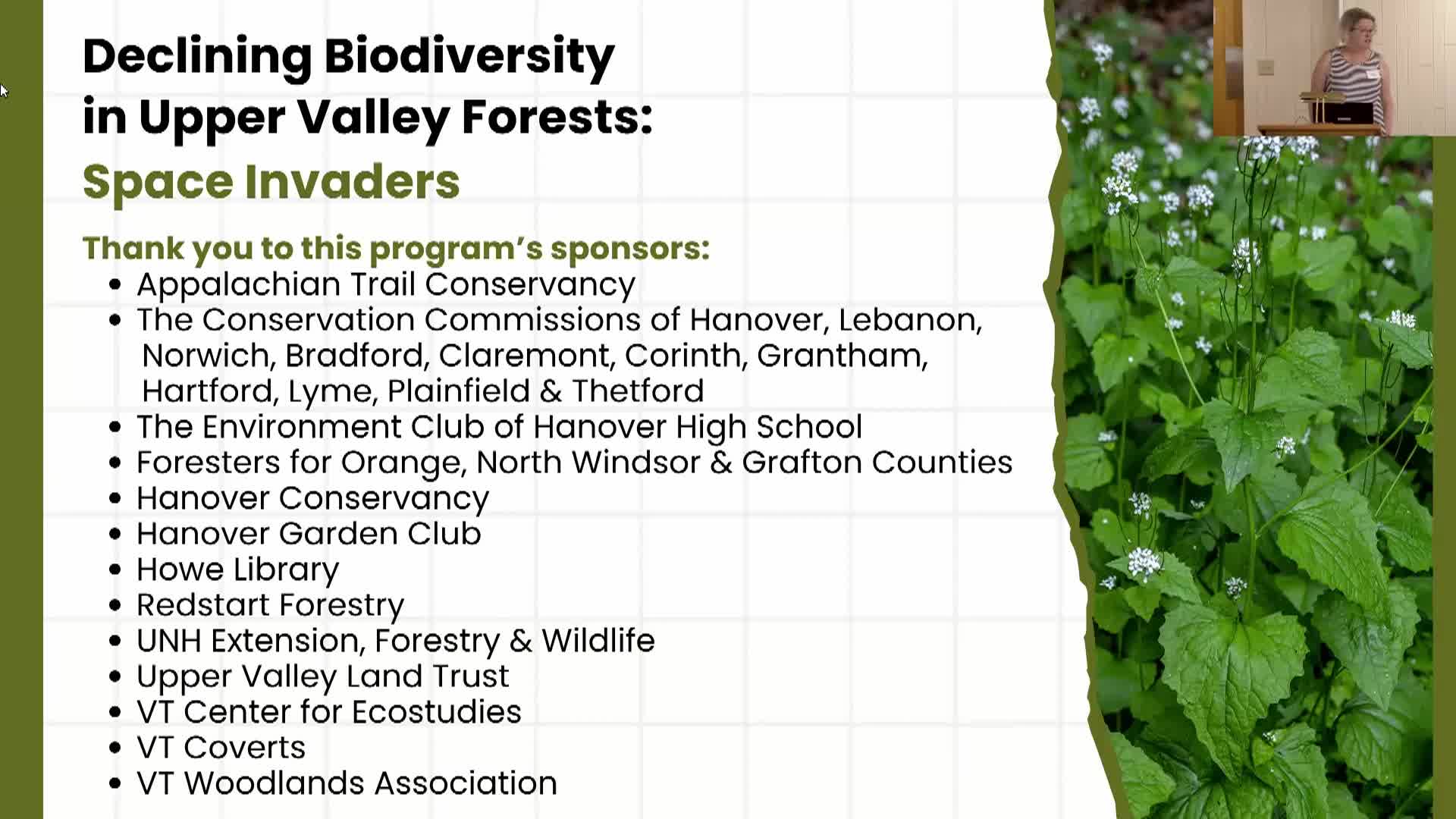 • Barbara McIlroy, Hanover Conservation Commission Biodiversity Committee: Neighborhood project on invasive species